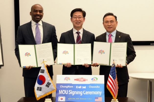양승조 충남지사와 구본영 천안시장은 지난 15일 미국 델라웨어주에서 D사와 공장 증설을 위한 신규 투자에 대해 협의했다.
