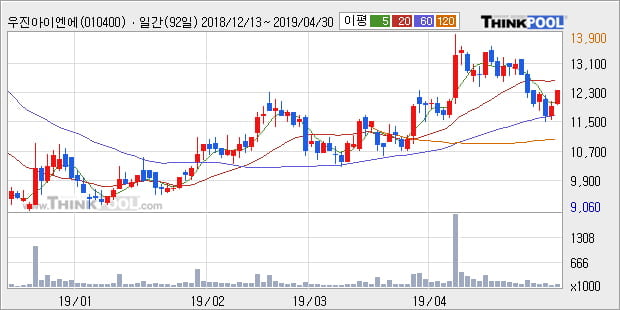 [그래프]우진아이엔에스 외국인/기관 매매동향