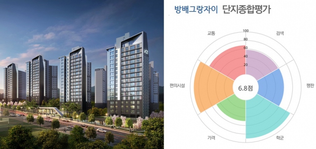 GS건설이 서울 서초구 방배동 방배경남아파트를 재건축한 '방배그랑자이'도 유망 분양단지에 이름이 올랐다. 이 아파트는 학군 지표에서 높은 성적을 받아 6.8점을 기록했다. 학부모 선호도가 높은 강남학군에 속한다는 점에서다.