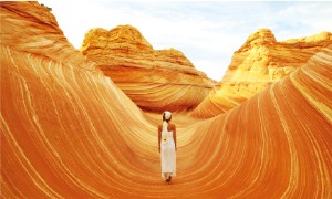 다음날 아침, 웨이브에 도착하면 인생 사진을 찍겠노라는 일념으로 고른 원피스에 얇은 카디건을 덧입고서 길을 나섰다. 반드시 마실 물을 1L 이상 준비하라고 신신당부했을 만큼 건조하고 삭막한 황야를 2시간쯤 걷자 드디어 모습을 드러낸 ‘더 웨이브’. 인터넷에서 접한 사진은 빙산의 일각일 뿐, 그보다 100배쯤은 신비롭고 멋진 풍경이 360도로 펼쳐졌다. 다른 여행지는 마음만 먹으면 다시 갈 수 있지만 이곳은 평생에 언제 또 올 수 있겠나 싶어 머무는 한 걸음 한 걸음 1분 1초가 너무도 소중했다.