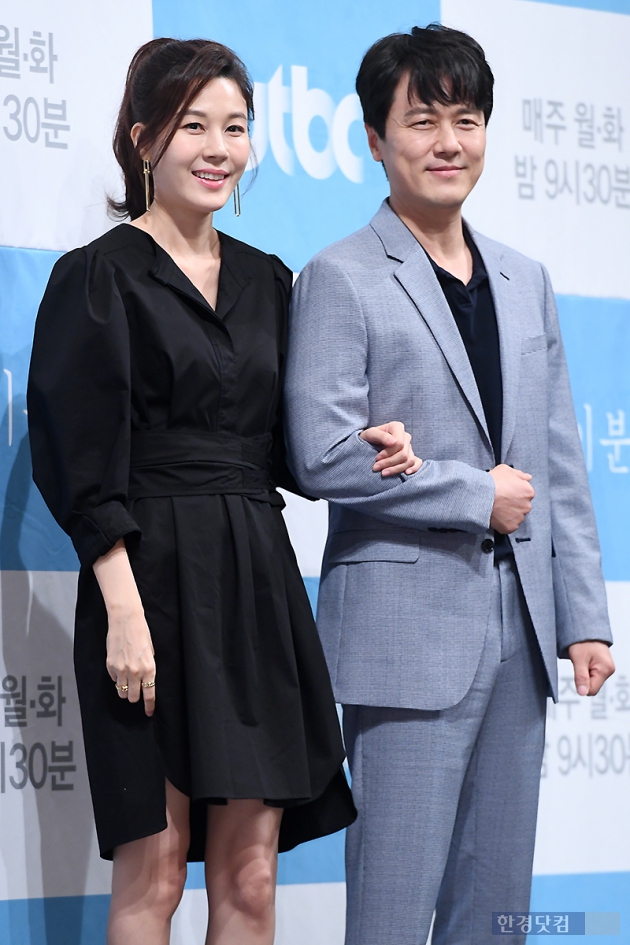 배우 김하늘, 감우성이 27일 오후 서울 논현동 임피리얼 팰리스 호텔에서 열린 JTBC 새 월화드라마 '바람이 분다'(극본 황주하, 연출 정정화, 김보경) 제작발표회에 참석해 포토타임을 갖고 있다.