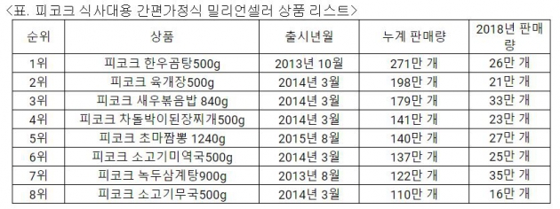 누계 매출 수량 1위는 '피코크 한우곰탕'으로 271만여 개의 판매고를 올렸다. 지난해에만 26만개가 팔렸다.