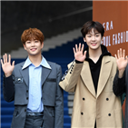 그룹 아스트로 mj, 윤산하, 차은우가 23일 오전 서울 동대문디자인플라자(ddp)에서 열린 '2018 f/w 헤라서울패션위크' charm's(참스, 강요한 디자이너) 컬렉션에 참석해 포토타임을 갖고 있다.최혁 한경닷컴 기자 chokob@hankyung.com 기사제보 및 보도자료 newsinfo@hankyung.com