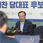 하락과 최저임금 부작용, 군산 GM과 조선소 폐쇄로 삼중고를 겪고 있다"고 말했고, 허 후보는 "20년 넘게 사업이 지지부진한 새만금 개발로 전북경제가 침체에 빠져 있다"고 진단했다. 정부 경제정책을 비판하고 낙후된 지역경제를 진단한 후보들은 '위기에 빠진 당을 구할 적임자'를 자처하며 지지를 호소했다. 최...