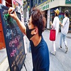 달 가까이 이어지면서 상당수 자영업자는 낭떠러지 끝에 몰려 있다. 6일 새 거리두기 조정안이 발표되지만 “크게 바뀌는 건 없을 것”이라는 게 정부의 설명이다. 그래도 자영업자들은 희망의 끈을 놓지 않는다. 5일 서울 종로구에서 한 상인이 점포 앞 안내판에 “다 같이 이겨내요”란 글귀를 적고 있다. 김영우 기자...