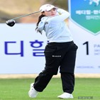 한국여자프로골프(KLPGA)투어 '메디힐·한국일보 챔피언십' 1라운드 경기가 13일 경기도 여주시 페럼클럽에서 열렸다. 대회에 출전한 최민경, 이채은2이 1번 홀에서 티샷한 후 포즈를 취하고 있다. 여주=변성현 한경닷컴 기자 byun84@hankyung.com
