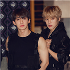 [김치윤 기자] mnet '엠카운트다운' 리허설 전 포토콜 행사가 15일 오후 서울 마포구 상암동 cj e&m센터에서 열렸다. 그룹 몬스타엑스 원호, 민혁이 포토타임을 갖고 있다. bnt뉴스 기사제보 star@bntnews.co.kr