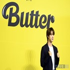 그룹 방탄소년단(BTS) 진이 21일 오후 서울 방이동 올림픽공원 올림픽홀에서 열린 새 디지털 싱글 'Butter' 발매 기념 글로벌 기자간담회에서 포토타임을 갖고 있다. 새 디지털 싱글 'Butter'는 중독성 강한 댄스 팝 장르로 도입부부터 귀를 사로잡는 베이스 라인과 청량한 신스 사운드가 특징이다....