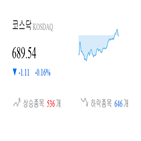 [이 시각 코스닥] 코스닥 현재 689.54p 하락세 지속 2018-11-05 14:01:39