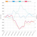 1,621억원, 895억원 순매수 중이다. 반면, 외인은 -2,552억원 순매도 하고 있다. [그림 1] 최근 한달간 투자자별 매매동향 및 코스피 수익률 최근 한달간 투자자별 매매동향을 살펴보면 외인의 매도세가 두드러졌다. 최근 20거래일 기준으로 외인은 총 -7,309억원을 순매도 했으며 개인과 기관은 각각 3,389억원, 1,193억원...