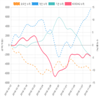기관은 총 -5,405억원, -2,267억원을 순매도 했으며 개인은 7,681억원 순매수 했다. 한편 이 기간동안 코스닥은 -4.39% 수익률을 기록했다. 현재 코스닥은 전체 상장 종목 중 362개 종목이 상승세를 보이고 있으며, 833개 종목은 하락중이다. 68개 종목은 보합세를 나타내고 있다. ※ 본 기사는 한국경제TV와 `거장들의...