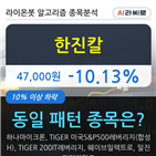 사모펀드 등 일부 기관의 순매매량은 표시되지 않음 이 시각 거래소에서 한진칼 이외에도 하나마이크론(-11.31%), TIGER 미국S &P500레버리지(합성 H)(-10.07%), TIGER 200IT레버리지(-10.22%), 웨이브일렉트로(-10.67%), 일진머티리얼즈(-12.29%) 등이 하락세를 보이고 있다. ※ 본 기사는 한국경제TV와 `금융 AI...