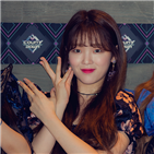 [김치윤 기자] mnet '엠카운트다운' 리허설이 13일 오후 서울 마포구 상암동 cj e&m센터에서 열렸다. 리허설에 앞서 그룹 오마이걸 승희가 포토타임을 갖고 있다. bnt뉴스 기사제보 star@bntnews.co.kr