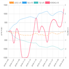 매수세가 두드러졌다. 최근 20거래일 기준으로 개인은 총 1조 245억원을 순매수 했으며 외인과 기관은 각각 -322억원, -9,680억원 순매도 했다. 한편 이 기간동안 코스닥은 2.59% 수익률을 기록했다. 현재 코스닥은 전체 상장 종목 중 631개 종목이 상승세를 보이고 있으며, 534개 종목은 하락중이다. 107개 종목은 보합세...