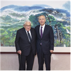 장관은 리처드 닉슨 전 미국 대통령 시절 국무장관을 지내며 미국과 중국의 데탕트를 주도했다. 또 역대 미국 대통령들의 조언자 역할을 했고 현재는 도널드 트럼프 대통령에게도 조언하고 있다. 중국 또한 키신저 전 장관을 중미 관계의 상징으로 여기고 있다. 차이신은 이번 키신저 전 장관의 방중시점이 미국 중간선거...