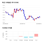 거래일보다 5.68% 오른 3,630원에 거래되고 있다. 주가의 흐름은 3,440원으로 개장해서 장중에 밀리지 않고 계속 상승해서 3,630원(+5.68%)까지 큰 폭으로 상승하고 있다. ◆ 차트 분석 - 주가 상승 중, 단기간 골든크로스 형성 일봉 차트의 모습은 단기간에 골든크로스를 만들고 주가가 60일선까지 뚫고 가는 모습이다. 이...