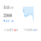 두드러졌다. 최근 20거래일 기준으로 개인과 외인은 총 3,322억원, 872억원을 순매수 했으며 기관은 -6,154억원 순매도 했다. 한편 이 기간동안 코스피는 3.44% 수익률을 기록했다. 현재 코스피는 전체 상장 종목 중 355개 종목이 상승세를 보이고 있으며, 453개 종목은 하락중이다. 85개 종목은 보합세를 나타내고 있다....